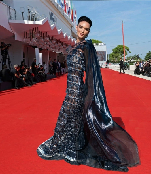 Eleganza tra luce e natura. Un abito che brilla ad ogni passo.